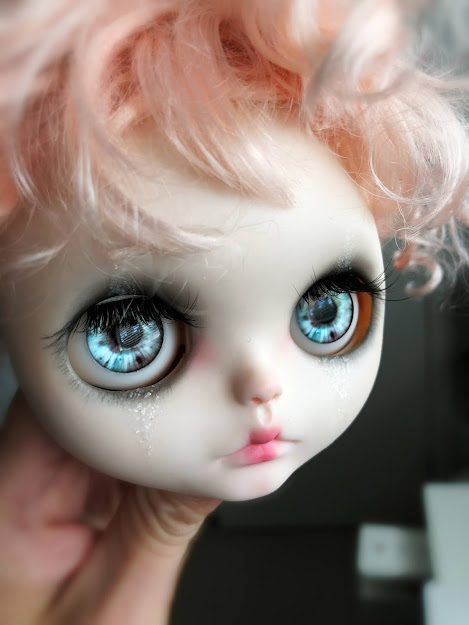 Gorgeous blue/grey eyes using pearl metallic paper and glass chips...